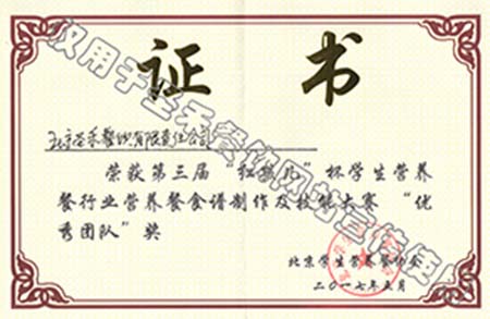 第三届“红孩儿”杯学生营养餐行业营养餐食谱制作及技能大赛优秀团队奖